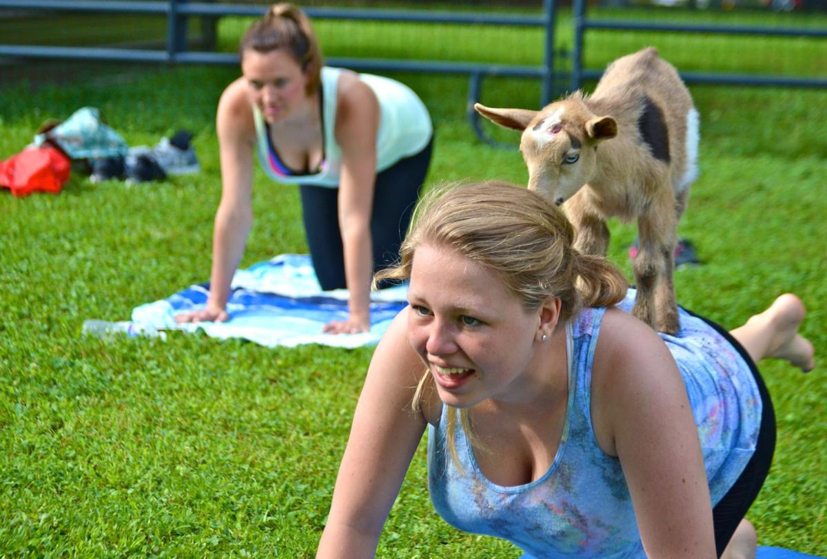 The silly and sweet goats used to roam the grounds during the farms guided yoga sessions and eventually decided to join in on the funa. She offers group sessions one on one online offline. The goat yoga class started as a complete coincidence and is now officially a thing thanks to a slew of local and national media placements.